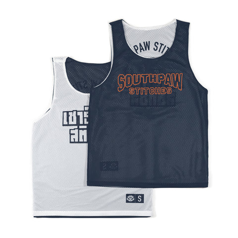 Reversible mesh jersey is the ultimate workout essential top designed to elevate your exercise routine. Made with premium heavy mesh, this tank provides breathability and comfort during intense workouts. The reversible design offers a 2-for-1 option of a navy side and a white side.